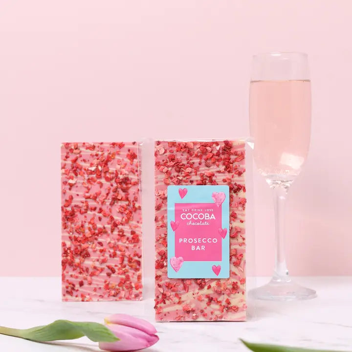 - Prosecco flavoured white chocolate bar 100g from Cocoba chocolate. Best Before 30/9/25