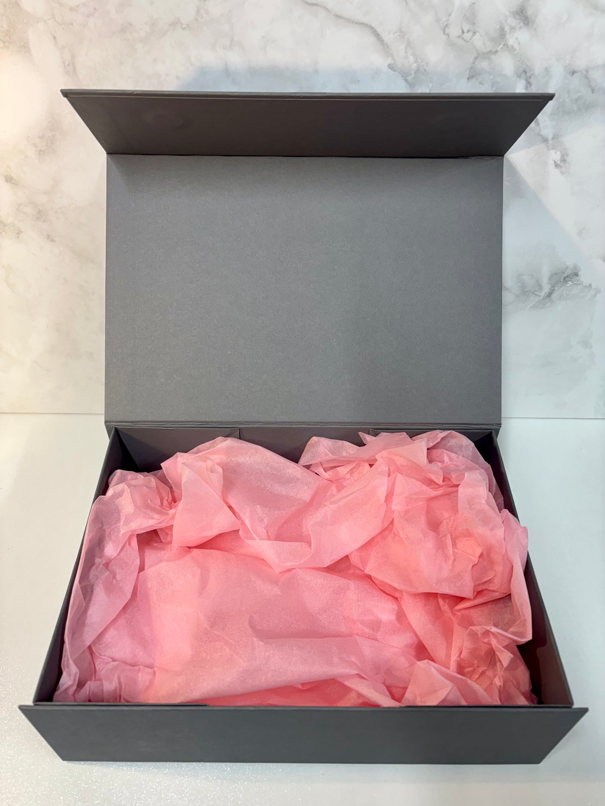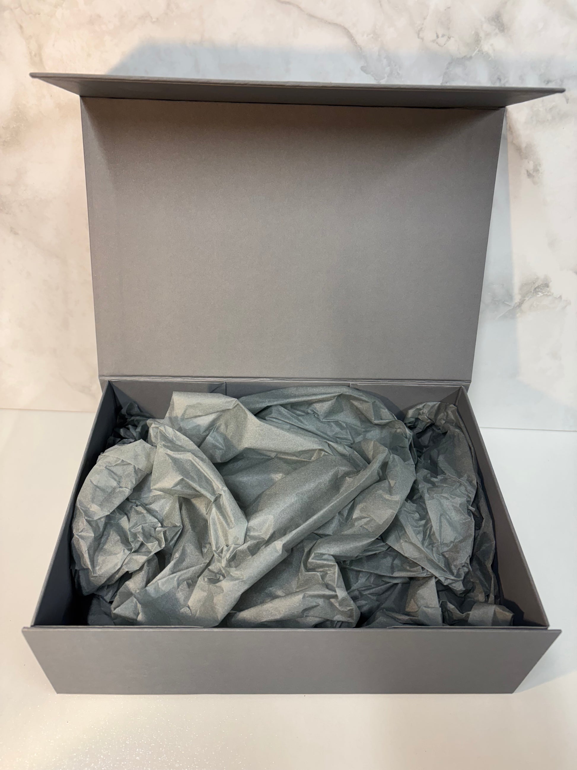 Our luxury medium sized magnetic box is perfect for about 4 to 6 items. These are gorgeous and can be kept and re-used again.
