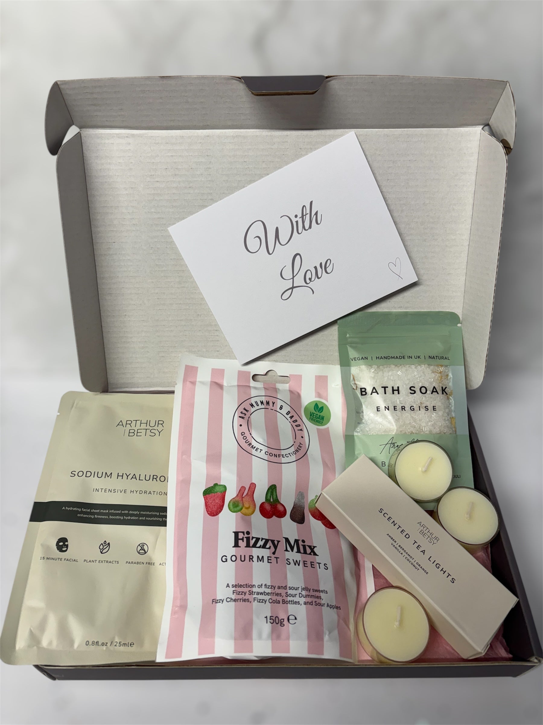 Our 'Pamper Night In' gift box is a fabulous treat and pamper for that someone special and it's suitable for any occasion. So whether it's a birthday, an anniversary, mother's day, a thank you or even a good luck gift this one is certainly sure to delight. You can personalise it further with the 'With Love' notecard.