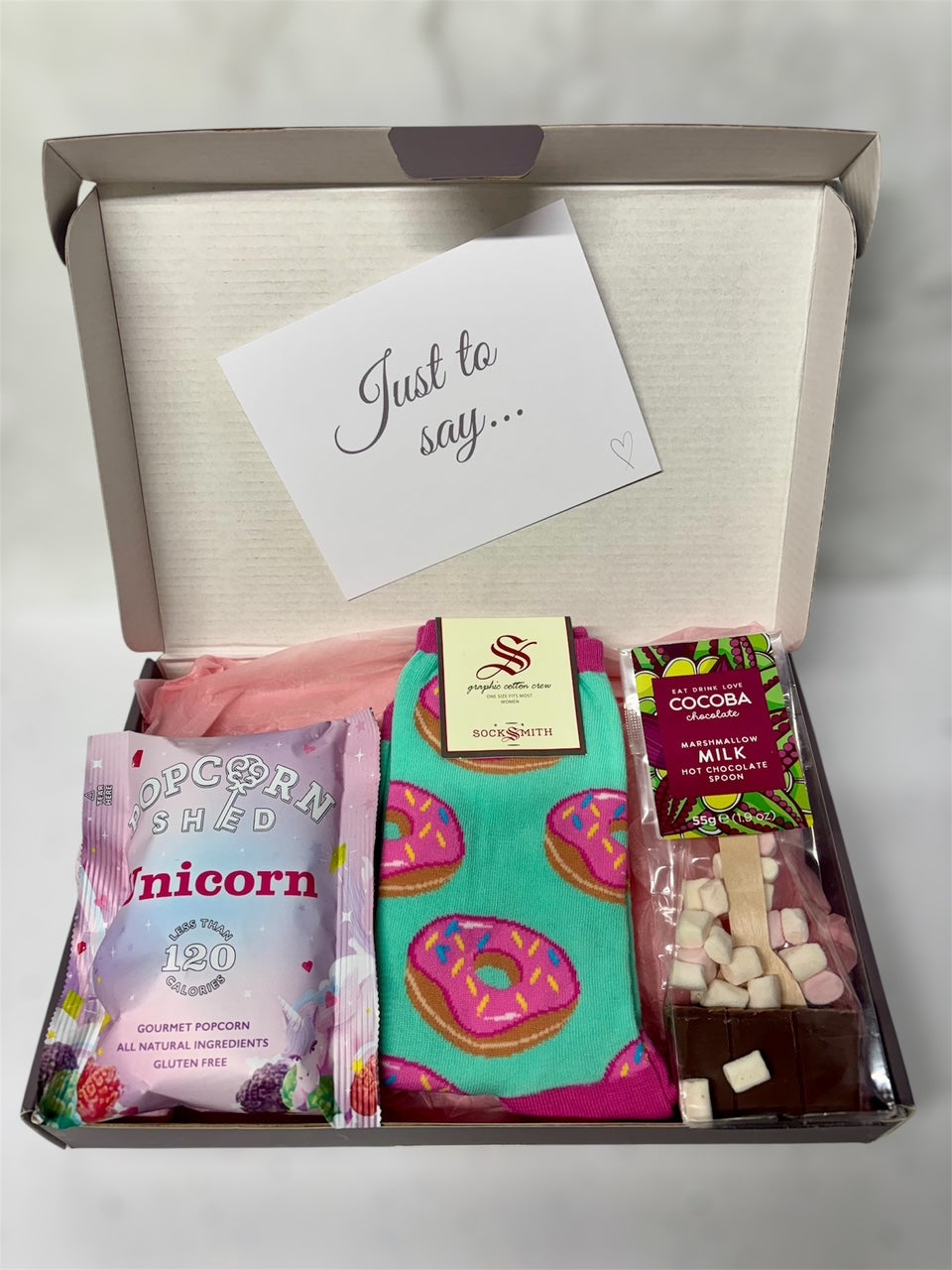 There doesn't need to be a reason to send our 'Sweet Treats' gift box. It's suitable for any occasion, a birthday, a thank you, a good luck, or even just to send that hug in the post. Gift box includes:-